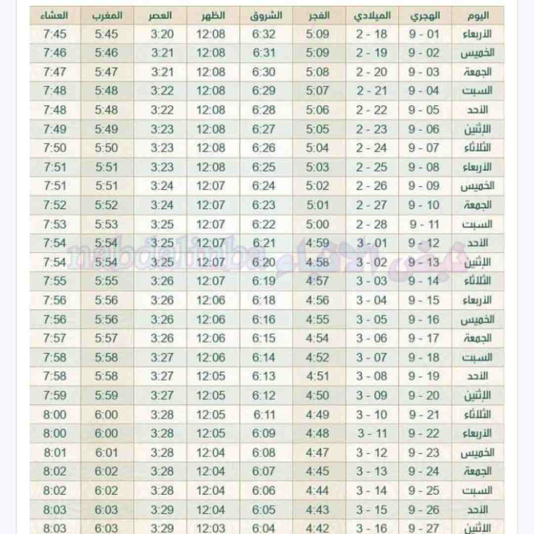 قراءة المزيد: جدول امساكية رمضان 2026 السعودية كاملة ومواقيت الصلاة في شهر رمضان