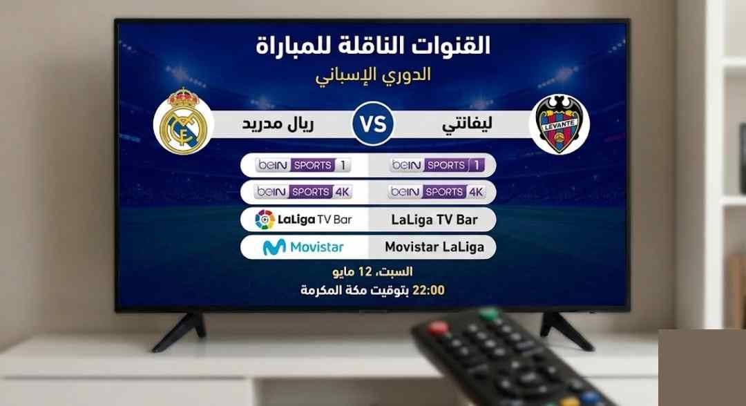 مع اختلاف حقوق البث في العالم، يمكن لجميع المشجعين اختيار القناة المناسبة حسب منطقتهم. تأكد من الاشتراك في القنوات الرسمية لمشاهدة مباراة ريال مدريد ضد ليفانتي بجودة عالية وبدون انقطاع.