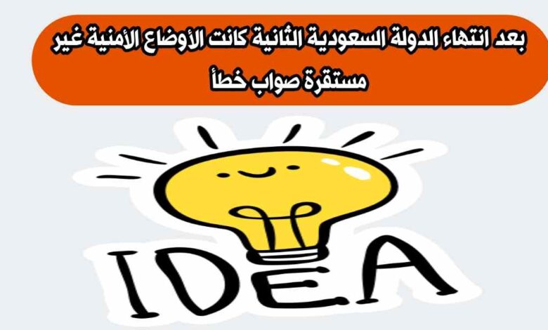 بعد انتهاء الدولة السعودية الثانية كانت الأوضاع الأمنية غير مستقرة صواب خطأ؟ يعد هذا السؤال من أسئلة التاريخ للطلاب في المملكة العربية السعودية إذ تصدر محركات البحث ومواقع التواصل الاجتماعي في الساعات القليلة الماضية بالبحث عن إجابته. ولكن هذا يأتي ضمن أنشطة كتب التاريخ للطلاب السعوديين في المملكة العربية السعودية وكان من الضروري أن نقدم لكم حل هذا السؤال وتوضيح الإجابة. ولذلك في مقالنا هذا سنوضح ما إذا كانت الأوضاع الأمنية بعد انتهاء الدولة السعودية الثانية غير مستقرة ثم نعرض بعض المعلومات التاريخية المتعلقة بذلك فتابعونا لمعرفة كل هذا.