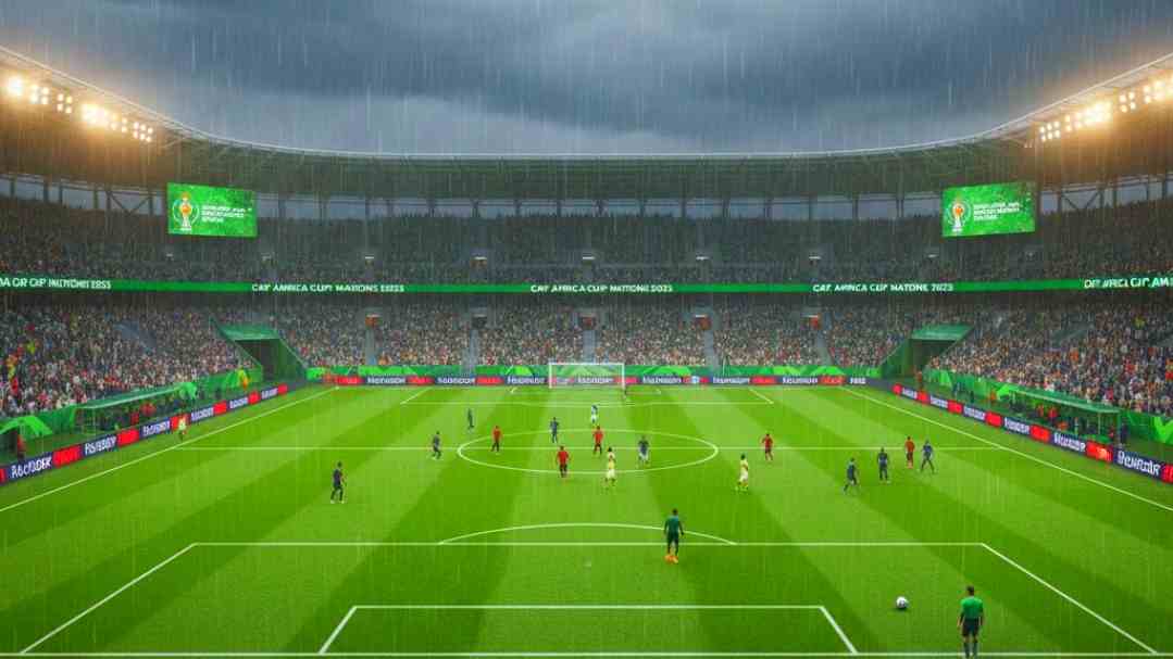 شهدت بعض مباريات كأس أمم إفريقيا 2025 أمطارًا غزيرة أثرت على العديد من الملاعب. إلا أن أرضيات الملاعب المغربية لم تتأثر بشكل كبير. ولذلك في مباراة الافتتاح بين منتخب المغرب ومنتخب جزر القمر، مثّل أداء العشب جسرًا بين التخوفات الجوية والإثارة الكروية. إذ لم تؤثر السيول على حركة الكرة أو سير اللقاء. ما عزز الإشادة المحلية والقارية بالبنية التحتية.