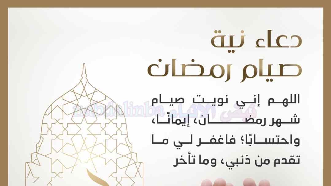 “اللهم إني نويت أن أصوم شهر رمضان المبارك لوجهك الكريم إيمانًا واحتسابًا، اللهم تقبله مني، واجعل صيامي خالصًا لوجهك، وارزقني الثبات عليه.”