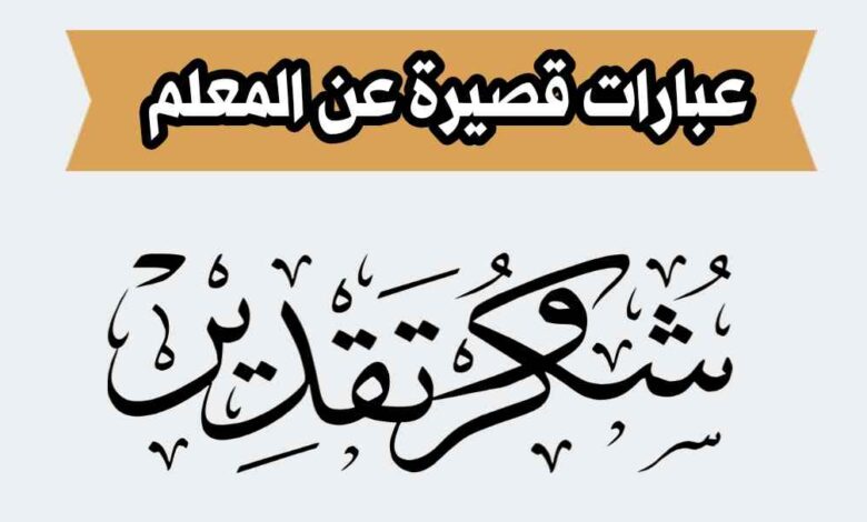 هي من العبارات التي يجب أن يحرص كل أفراد المجتمع على أن يقتني على الأقل عبارة جميلة منها حيث أن المعلم يستحق أن يتم تكريمه ونشر أجمل الكلمات عنه, المعلم هو المربي وهو المنشئ لهه الأجيال التي كانت ولا زالت عماد الوطن. ولذلك عبارات قصيرة عن المعلم المتميز هي نوع من الشكر على ما يقوم به المعلم من جهود في تربية وتنشئة الأجيال والطلاب, ويبرز البحث عن عبارات قصيرة عن المعلم في يوم المعلم الذي ينتظره الجميع على أحر من الجمر كي يقوم بتكريم معلمه وشكره على ما قدمه وما يقدمه له من علم نافع له وللمجتمع كله. ولكن من باب المشاركة في تكريم وشكر المعلم قررنا أن نخصص هذا المقال لعرض بعض من أجمل عبارات للمعلم قصيرة عن المعلم الذي كان ولا زال قدوة ومثال لكل تائه لا يعلم أين يذهب. ولذلك فيما يلي تابعوا معنا هذه الباقة المميزة من عبارات عن المعلم 2026 قصيرة.