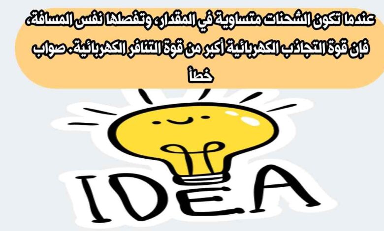 السؤال: “عندما تكون الشحنات متساوية في المقدار، وتفصلها نفس المسافة، فإن قوة التجاذب الكهربائية أكبر من قوة التنافر الكهربائية” يحتاج لتحليل دقيق: