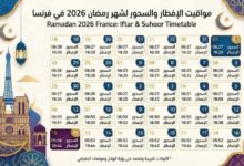 تقويم رمضان 2026 للصلاة والإفطار (تقريبي)